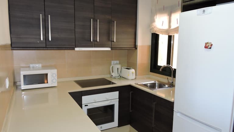 Die Ferienwohnung verfügt über 3 Schlafzimmer, ein Wohnzimmer mit einem Satelliten-Flachbild-TV, eine gut ausgestattete Küche und 2 Badezimmer mit Bidet und Dusche. Handtücher und Bettwäsche sind vorhanden. Die Unterkunft bietet auch eine Terrasse mit Poolblick.