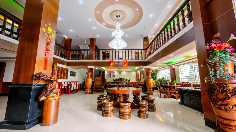 Das Hoang Duc Hotel liegt in Chau Doc und bietet eine günstige Lage für Reisende, die die Stadt erkunden möchten. Die Umgebung bietet zahlreiche Sehenswürdigkeiten und Aktivitäten, darunter eine Snackbar, in der Gäste Snacks und Getränke genießen können. Kostenfreie Parkplätze stehen den Gästen zur Verfügung, so dass sie bequem mit dem Auto anreisen können.