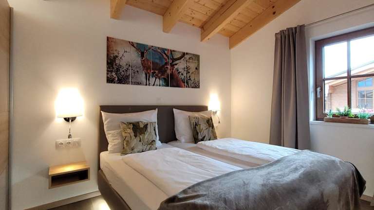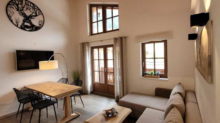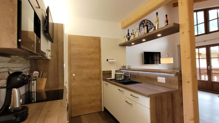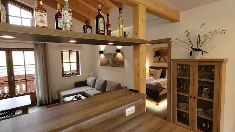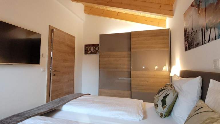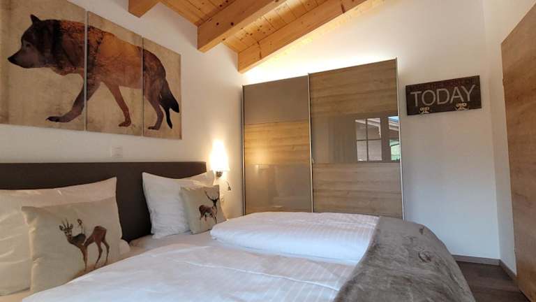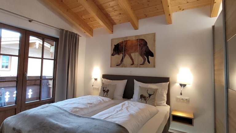 Die Ferienwohnung verfügt über 2 Schlafzimmer, ein Wohnzimmer, einen Flachbild-TV, sowie eine gut ausgestattete Küchenzeile mit Kühlschrank und Geschirrspüler. Ein Badezimmer mit Dusche, Handtücher sowie Bettwäsche werden zur Verfügung gestellt. Ein Balkon mit Bergblick rundet das Angebot ab.