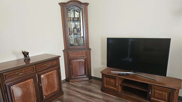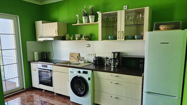 Die Ferienwohnung verfügt über ein Schlafzimmer, einen Satelliten-Flachbild-TV, einen Essbereich sowie eine gut ausgestattete Küche mit Kühlschrank. Ein Wohnzimmer ist ebenfalls vorhanden. Handtücher und Bettwäsche werden zur Verfügung gestellt.