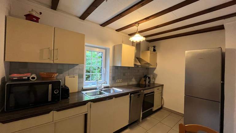 Die Ferienwohnung verfügt über ein Schlafzimmer, ein Wohnzimmer mit einem Flachbild-TV, eine gut ausgestattete Küche mit Kühlschrank und Geschirrspüler sowie zwei Badezimmer mit Dusche. Zudem gibt es eine Terrasse und einen schönen Gartenblick. Handtücher und Bettwäsche werden bereitgestellt.