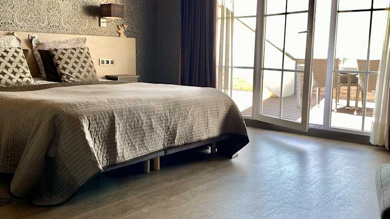 Die Zimmer sind modern ausgestattet und beinhalten unter anderem allergikerfreundliche Optionen. Einige Zimmer verfügen über eine private Terrasse, und die Familiensuiten sind mit separaten Kinderzimmern ausgestattet. Es besteht die Möglichkeit, eine Box für Haustiere mitzubringen, wobei ein Haustier bis maximal 10 kg pro Zimmer erlaubt ist.