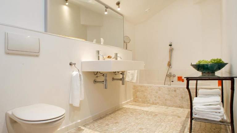 Die Ferienwohnung umfasst ein Schlafzimmer sowie ein Badezimmer mit Dusche und Badewanne. Zudem bietet sie eine gut ausgestattete Küche mit Kühlschrank, Geschirrspüler und Ofen. Das Wohnzimmer verfügt über einen gemütlichen Sitz- und Essbereich. Handtücher und Bettwäsche sind in der Einrichtung enthalten.