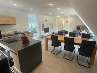 Die Unterkunft verfügt über eine voll ausgestattete Küche mit Kühlschrank, Geschirrspüler, Ofen, Herdplatte, Toaster, Kaffeemaschine und Wasserkocher, was eine selbständige Verpflegung ermöglicht.