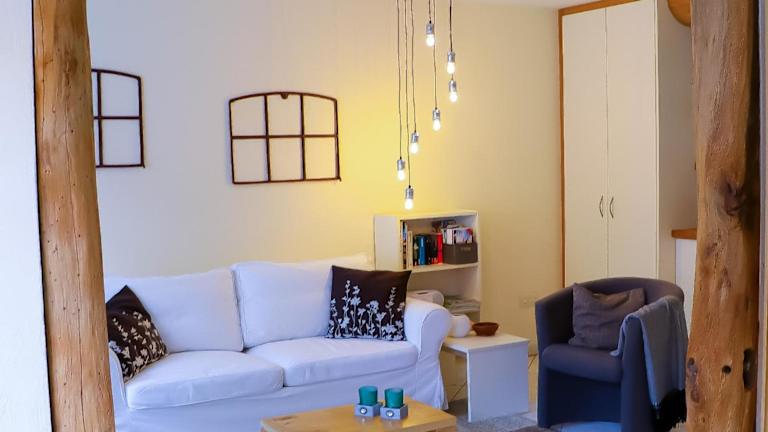 Die Ferienwohnung bietet Platz für bis zu ein Schlafzimmer und ein Wohnzimmer. Des Weiteren ist ein Flachbild-TV vorhanden. Ein Badezimmer mit Dusche sowie Handtücher und Bettwäsche werden bereitgestellt. Zusätzlich stehen Gartenmöbel und ein Picknickbereich zur Verfügung.