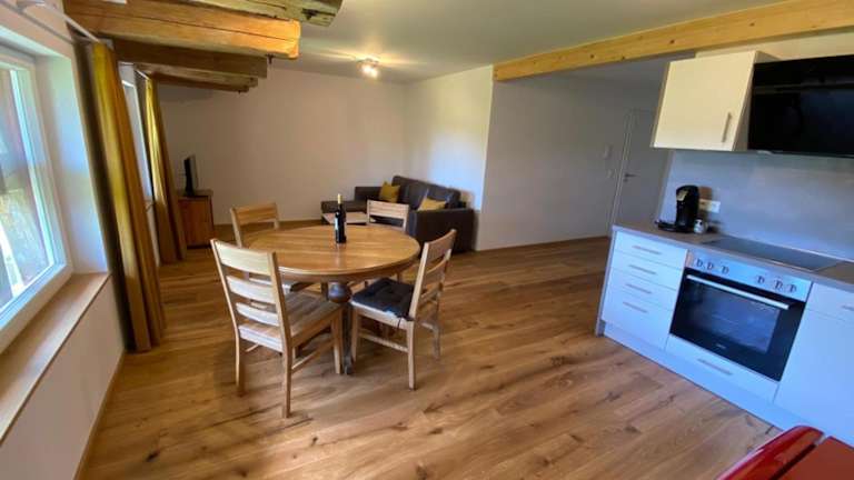 Die Wohneinheiten im Hofgut Breitenbach sind mit einem Schlafsofa und einem gemütlichen Sitzbereich ausgestattet. Zu den Annehmlichkeiten gehören ein Flachbild-TV mit Satellitenkanälen, eine gut ausgestattete Küchenzeile sowie ein eigenes Badezimmer mit Dusche. Zur Verfügung stehen ein Kühlschrank, ein Geschirrspüler, ein Ofen sowie eine Kaffeemaschine und ein Wasserkocher.
