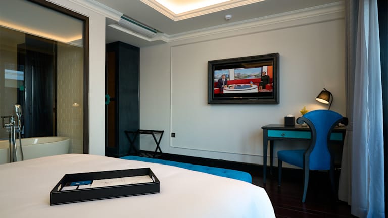 Die Zimmer sind klimatisiert und bieten ein Queensize-Bett oder ein Kingsize-Bett. Zu den Annehmlichkeiten gehören ein Safe, eine Minibar, ein Schreibtisch sowie ein Flachbild-TV mit Kabelkanälen. In den Badezimmern befinden sich eine Dusche, Kosmetikartikel und Bademäntel. Einige Zimmer verfügen über einen Balkon oder Stadtblick. Hausschuhe werden ebenfalls bereitgestellt.