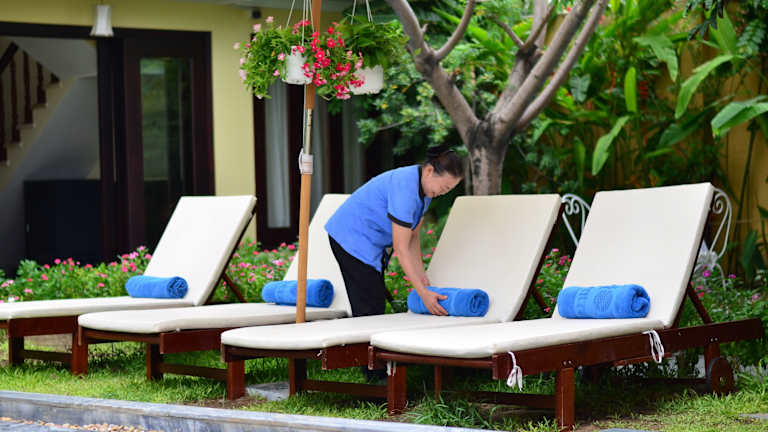 Das Hoian Central Hotel bietet eine einladende Atmosphäre mit einem Aussenpool, einem Garten und einem All-inclusiv-Service wie einem Conciergeservice sowie einer rund um die Uhr besetzten Rezeption. Für Bequemlichkeit sorgen des Weiteren ein Geldautomat und die Möglichkeit, Fahrräder kostenlos auszuleihen.