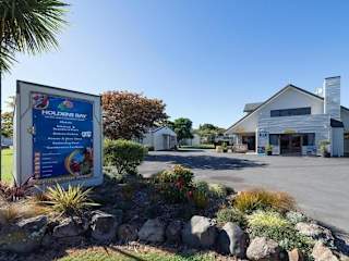 Der Holdens Bay Holiday Park befindet sich in unmittelbarer Nähe zum Regionalflughafen Rotorua, nur 2 km entfernt. Die Umgebung bietet eine ruhige Atmosphäre mit einem schönen Garten und einem Kinderspielplatz für Familien.