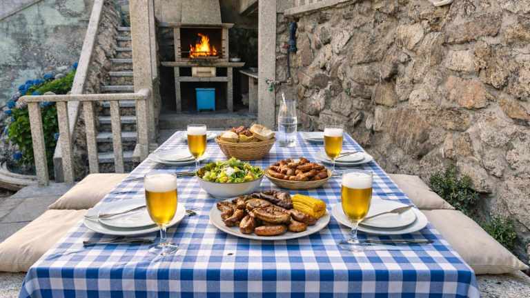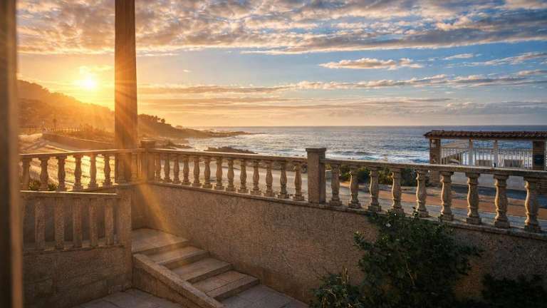Die Unterkunft befindet sich am Strand in Baiona, nur 2,3 km vom Strand Praia da Ribeira entfernt. Die Umgebung bietet zahlreiche Möglichkeiten für Aktivitäten wie Wandern, Angeln und Schnorcheln.