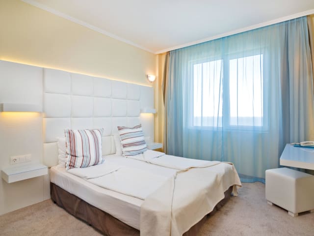 - Familienzimmer (40 m2), Doppelzimmer (35 m2); Nichtraucherzimmer; Alle Zimmer verfügen über einen Balkon mit Panoramablick (Strand od. Stadt). Alle Zimmer bieten Klimaanlage, eigenes Badezimmer (mit Dusche od. Wanne), Flachbild-TV, Haartrockner, Handtücher, Toilettenpapier. einen Flachbild-TV und eine Minibar. WLAN ist in allen Bereichen der Unterkunft kostenfrei verfügbar.