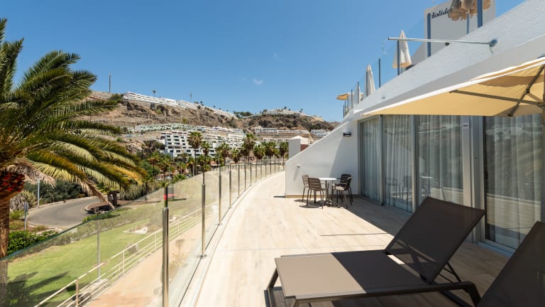 Club Puerto Calma ist Ihr zweites Zuhause mit viel Platz und modernem Design. Genießen Sie von Ihrem Balkon aus spektakuläre Sonnenuntergänge und einen atemberaubenden Blick auf den Hafen und den Strand von Puerto Rico. Gemütliche Schlafzimmer blicken auf den Atlantischen Ozean. Club Puerto Calma ist das größte Resort von Holiday Club Canarias mit 103 geräumigen, voll ausgestatteten Apartments mit einem Schlafzimmer und 11 Superior-Apartments mit zwei Schlafzimmern. Es wurde 1987 erbaut und 2012 komplett renoviert. Dieses Resort ist eine ausgezeichnete Wahl für einen Familienurlaub. Treffen Sie neue Freunde im Schwimmbad. Genießen Sie einen angenehmen Abend im Restaurant des Resorts. Ein-Zimmer-Größe: ± 32 m2 plus ± 17 m2 Terrasse. Maximalbelegung 4 Personen (Schlafzimmer 2; Schlafsofa 2) Größe mit zwei Schlafzimmern: ± 65 m2 plus ± 34 m2 Terrasse. Maximalbelegung 6 Personen (Schlafzimmer 4; Schlafsofa 2)