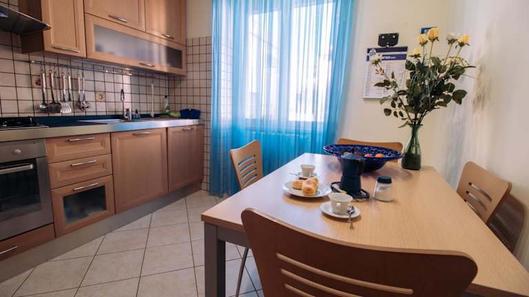 Die Ferienwohnung verfügt über 2 Schlafzimmer, ein Wohnzimmer mit einem Flachbild-TV sowie eine voll ausgestattete Küche mit Kühlschrank und Geschirrspüler. Ein Badezimmer mit Haartrockner ist ebenfalls vorhanden. Handtücher und Bettwäsche werden bereitgestellt.