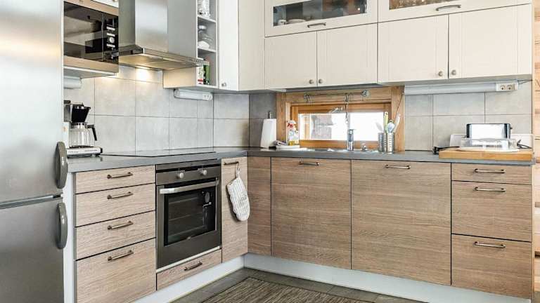 Das Ferienhaus Holiday Home Aamunkoi by Interhome bietet ein heimeliges Ambiente mit einem TV sowie einer Küchenzeile, die mit einem Kühlschrank und einem Geschirrspüler ausgestattet ist.