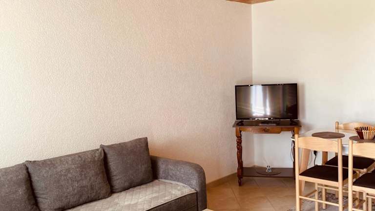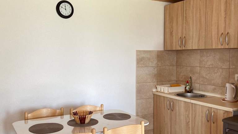 Das Apartment besteht aus einem gemütlichen Schlafzimmer, einem komfortablen Wohnzimmer und einer voll ausgestatteten Küche. Die Küche verfügt über einen Kühlschrank und eine Kaffeemaschine, so dass Sie sich jederzeit Ihre eigenen Mahlzeiten zubereiten können. Das Badezimmer ist mit einer Dusche und kostenlosen Pflegeprodukten ausgestattet. Handtücher und Bettwäsche werden gestellt, so dass Sie sich um nichts kümmern müssen.