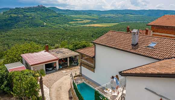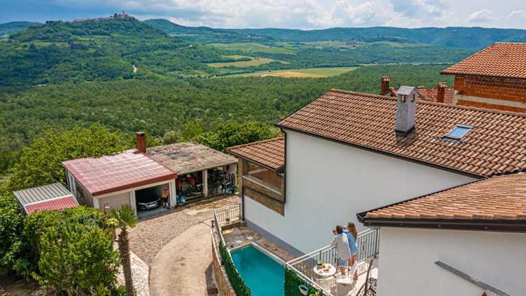 Die Unterkunft liegt in der Umgebung von Motovun und bietet einen herrlichen Bergblick. In der Nähe befindet sich der bekannte Aquapark Istralandia, etwa 22 km entfernt, sowie die Burg Pazin, die 24 km entfernt ist. Der Naturpark Salinen von Sečovlje liegt rund 35 km entfernt.
