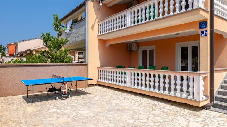 In der Ferienunterkunft sind Tischtennis und Grillmöglichkeiten verfügbar. Ein Aussenpool sorgt für Entspannung und Erfrischung während des Aufenthalts.