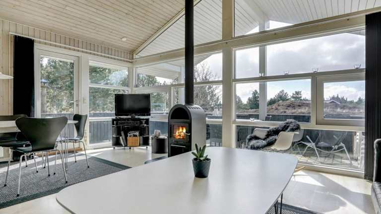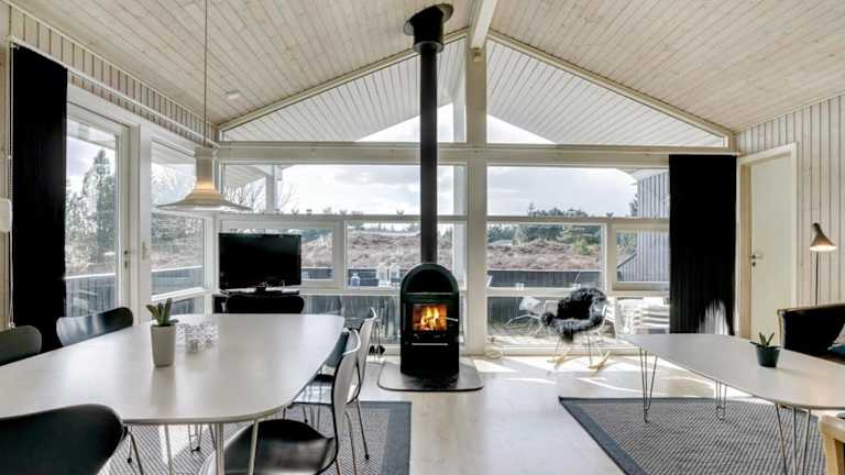 Das Ferienhaus besteht aus drei Schlafzimmern, einem Badezimmer mit Dusche, einem Wohnzimmer mit TV sowie einer gut ausgestatteten Küche, die über einen Kühlschrank und einen Geschirrspüler verfügt. In der Unterkunft steht den Gästen zusätzlich eine Sauna zur Verfügung.