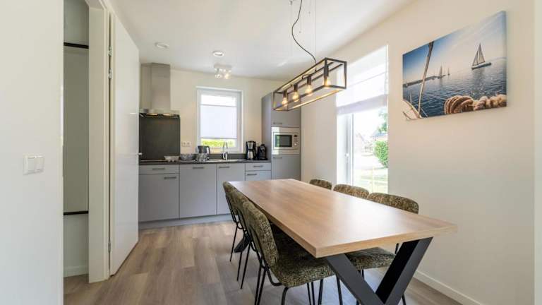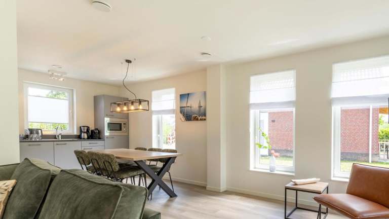 Das Ferienhaus umfasst zwei Schlafzimmer, einen TV mit Kabelkanälen und eine gut ausgestattete Küche mit Kühlschrank und Geschirrspüler. Zudem verfügt es über ein Badezimmer mit Dusche.