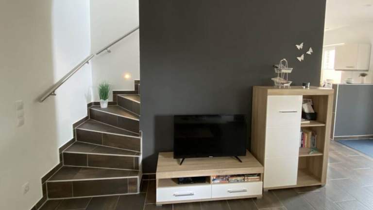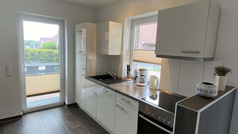 Die Ferienwohnung ist mit einem Schlafzimmer ausgestattet und bietet ein TV mit Kabelkanälen sowie eine voll ausgestattete Küche. Diese beinhaltet einen Kühlschrank, Geschirrspüler, Waschmaschine, Ofen und Mikrowelle.