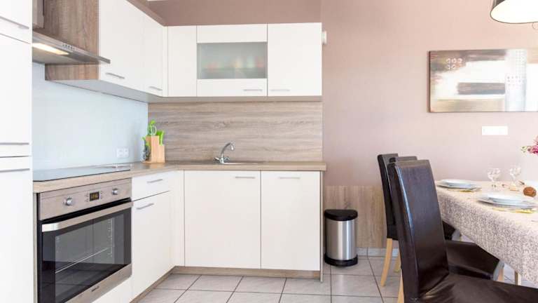 Das Ferienhaus verfügt über 5 Schlafzimmer, einen TV mit Satellitenkanälen sowie eine gut ausgestattete Küche, ausgestattet mit Kühlschrank und Geschirrspüler. Es sind 3 Badezimmer mit Dusche vorhanden. Bettwäsche, Handtücher und Wäsche werden nach den Richtlinien der örtlichen Behörden gewaschen.