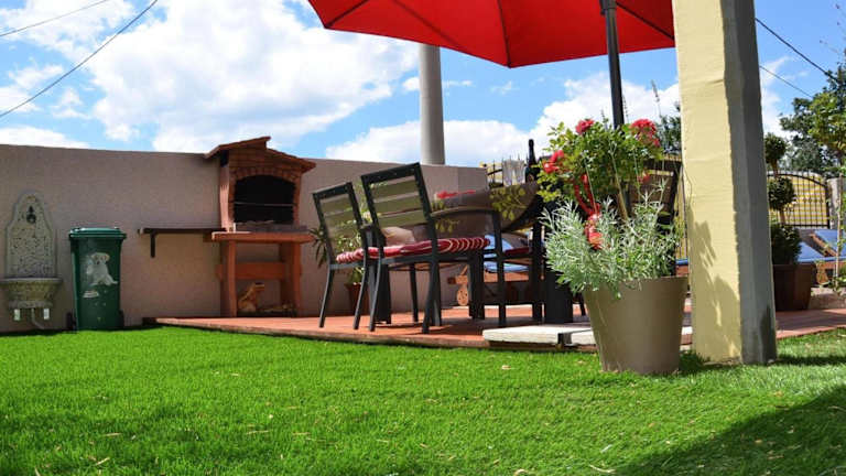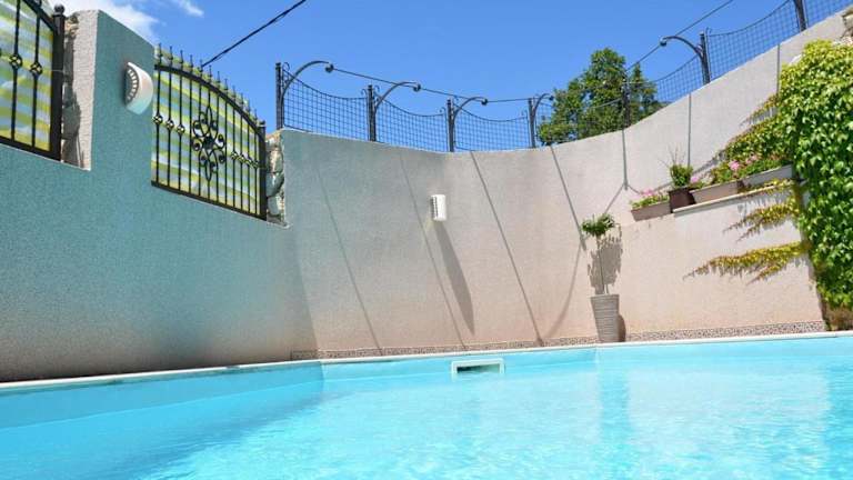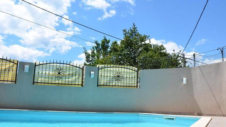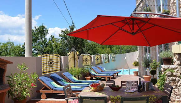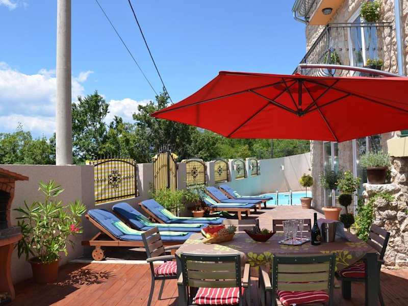 Das grosse Ferienhaus verfügt über einen eigenen Pool und bietet eine Terrasse für entspannende Momente in heimeliger Atmosphäre. Es verbindet Bequemlichkeit mit einer idyllischen Umgebung.
