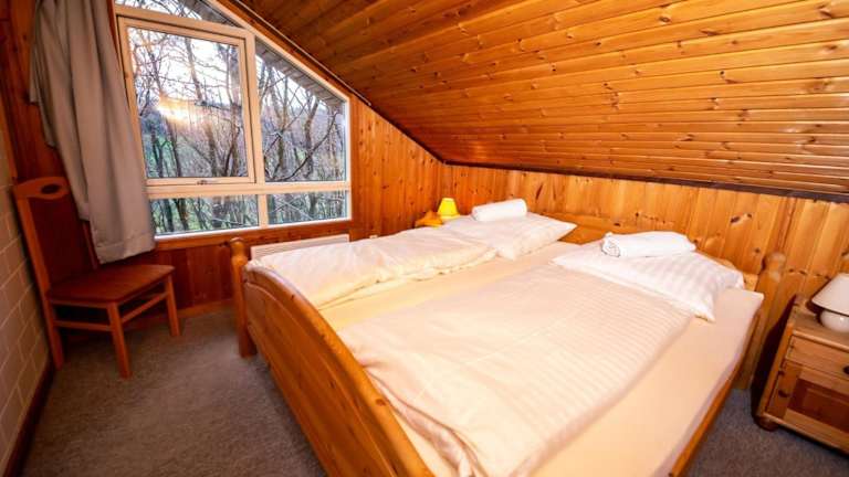 Das Ferienhaus ist mit zwei Schlafzimmern ausgestattet und bietet ein gemütliches Wohnzimmer mit einem TV mit Satellitenkanälen. Eine voll ausgestattete Küchenzeile mit Kühlschrank und Geschirrspüler ist ebenfalls vorhanden. Die Gäste finden ein Badezimmer mit Badewanne oder Dusche vor. Handtücher und Bettwäsche können gegen Gebühr gemietet werden.