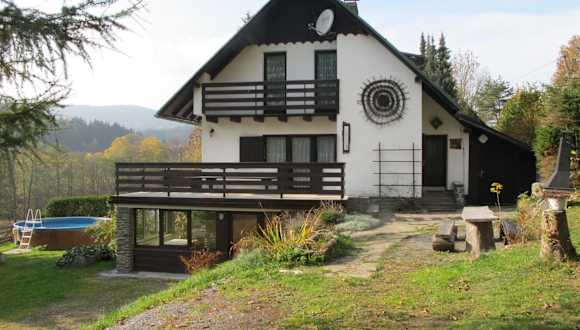 Die Unterkunft bietet Übernachtungsmöglichkeiten in einem Ferienhaus mit einem Balkon. Ein eigener Pool, ein Garten und ein kostenloser Privatparkplatz sind vorhanden. Die Gäste können die Sauna und weitere Annehmlichkeiten nutzen.