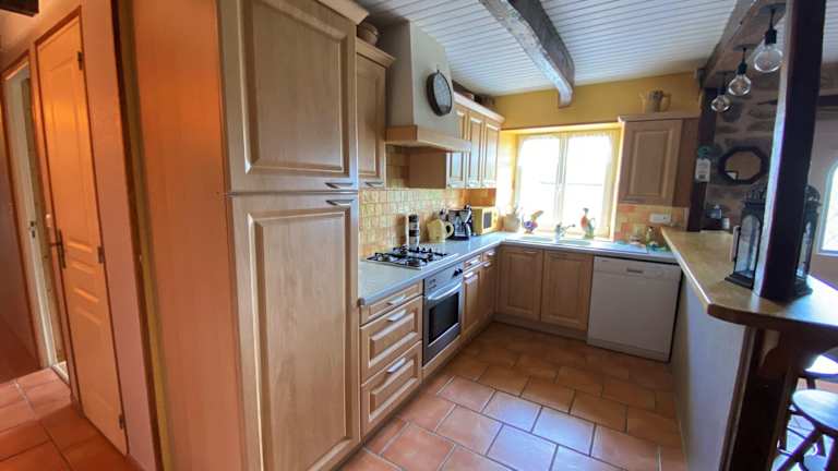 Die Unterkunft umfasst vier Schlafzimmer und eine voll ausgestattete Küche, die einen Kühlschrank, Geschirrspüler, Waschmaschine, Ofen und Mikrowelle bereitstellt.