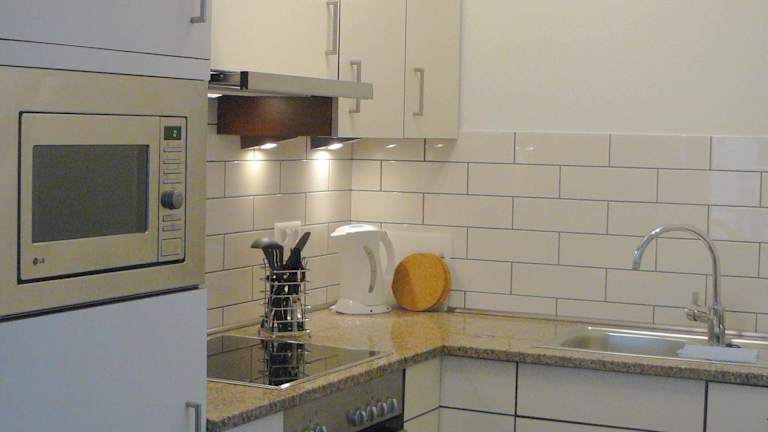 Das Ferienhaus besitzt eine Küche mit Kühlschrank und Geschirrspüler, was die Zubereitung eigener Mahlzeiten ermöglicht. Genaueres über Verpflegungsoptionen ist nicht vorhanden, jedoch können Gäste durch die Küche für ihre eigenen Bedürfnisse sorgen.