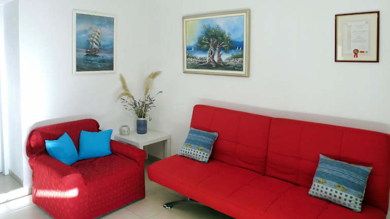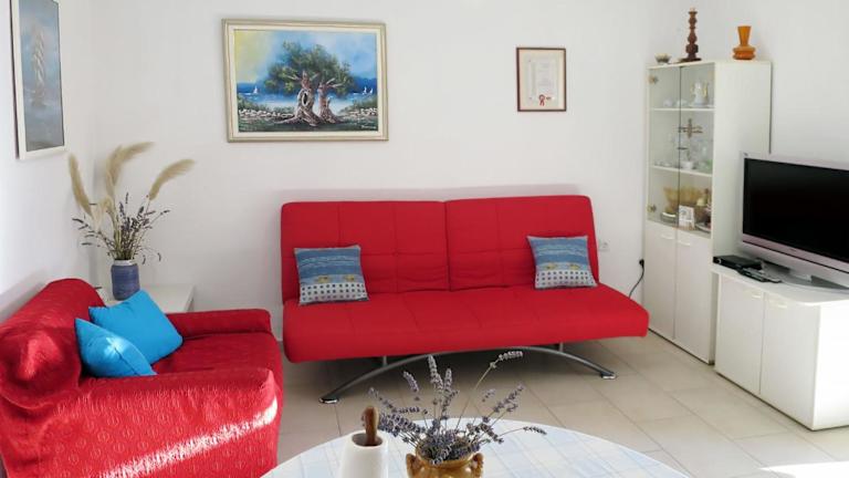 Das Ferienhaus besteht aus zwei Schlafzimmern, einem Wohnzimmer und einer voll ausgestatteten Küche, die mit einem Kühlschrank und einer Kaffeemaschine ausgestattet ist. Das Badezimmer verfügt über ein Bidet und eine Dusche. Ein TV mit Satellitenkanälen ist ebenfalls vorhanden.