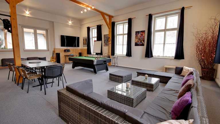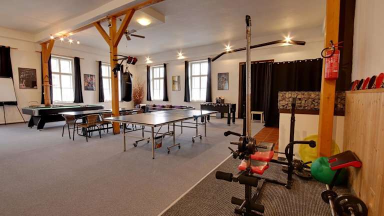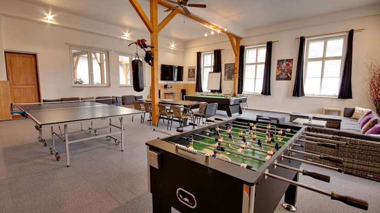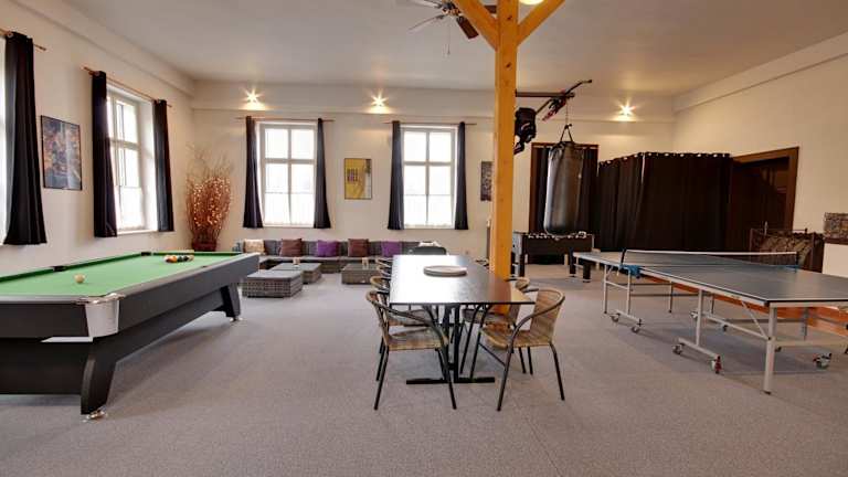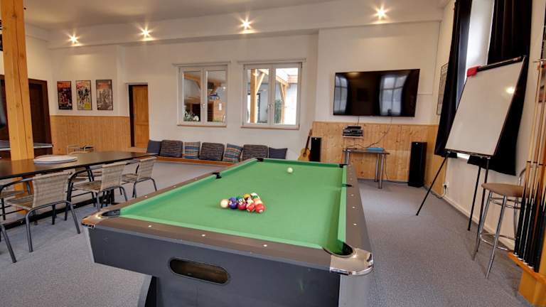 Die Unterkunft verfügt über Sport- und Freizeitmöglichkeiten wie Billard, Tischtennis sowie eine Gemeinschaftslounge. Gäste haben die Möglichkeit, im Garten zu entspannen, der einen Kinderspielplatz und Grillmöglichkeiten umfasst. Zudem sind Aktivitäten wie Wandern und Velofahren in der Nähe möglich.