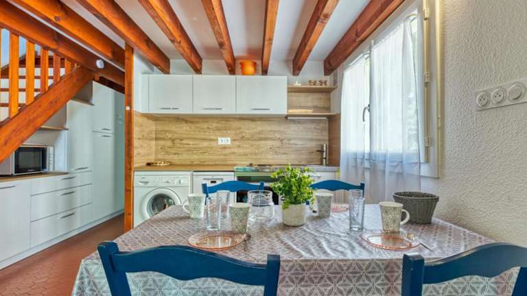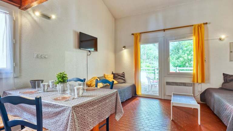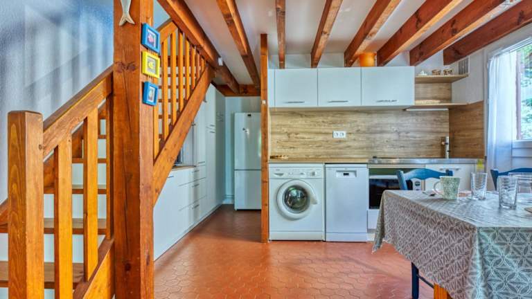 Das Ferienhaus besteht aus einem Schlafzimmer und einem Wohnzimmer. Es verfügt über eine voll ausgestattete Küche mit Kühlschrank und Kaffeemaschine. Das Badezimmer ist mit einer Dusche ausgestattet. Fernseher sind vorhanden, und es besteht die Möglichkeit, einen Babybett zu mieten. Einige Schlafbereiche befinden sich in einem offenen Bereich.