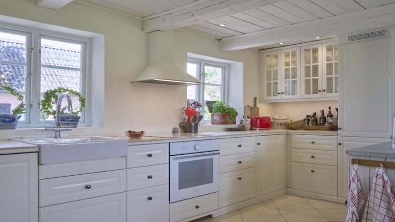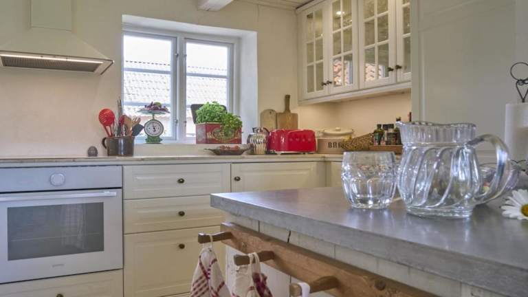 Die gut ausgestattete Küche beinhaltet einen Kühlschrank, Geschirrspüler und Ofen, was eine einfache Zubereitung von eigenen Mahlzeiten ermöglicht. Weitere Verpflegungsmöglichkeiten sind nicht angegeben.