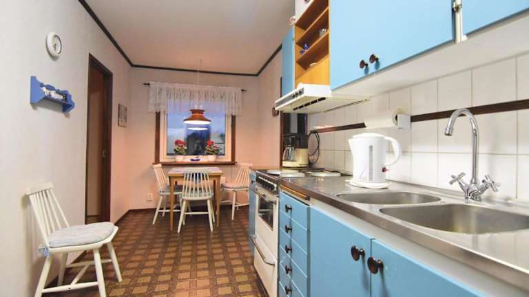 Das Ferienhaus ist komfortabel eingerichtet und verfügt über 2 Schlafzimmer, ein Wohnzimmer sowie eine voll ausgestattete Küche mit Kühlschrank und Mikrowelle.