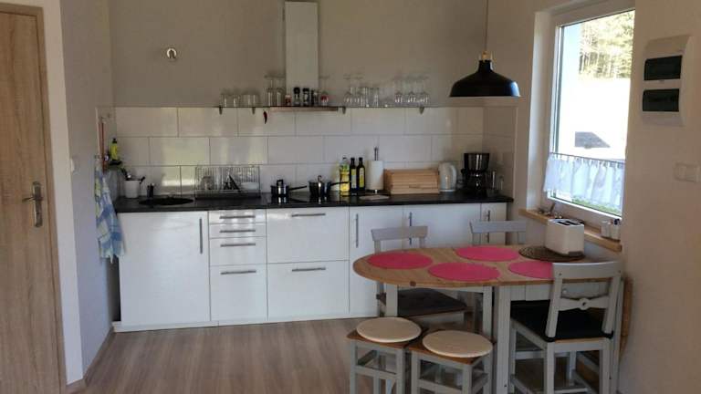 Das Ferienhaus ist in Lubkowo gelegen, 46 km vom Hafen von Gdynia und 48 km vom Hauptbahnhof Gdynia sowie der Werft Gdynia entfernt. Der nächstgelegene Flughafen ist der Lech-Wałęsa-Flughafen Danzig, 61 km von der Unterkunft entfernt.