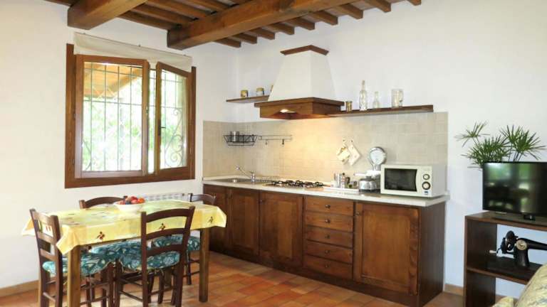 Das Ferienhaus umfasst 1 Schlafzimmer, ein Wohnzimmer mit Flachbild-TV und eine voll ausgestattete Küche mit Kühlschrank und Ofen. Ein Badezimmer mit Bidet steht ebenfalls zu Verfügung. Heizungsmöglichkeiten sind optional gegen einen Aufpreis erhältlich. Ein Babybett kann kostenlos bereitgestellt werden, und gegen Aufpreis ist ein Zustellbett verfügbar.