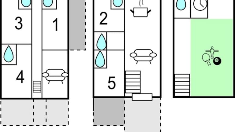 Das Ferienhaus bietet 5 Schlafzimmer, ein Wohnzimmer und eine voll ausgestattete Küche mit Kühlschrank und Kaffeemaschine. Es hat 6 Badezimmer mit Dusche und Badewanne. Die Einrichtung umfasst Gartenmöbel sowie einen eigenen Aussenpool.
