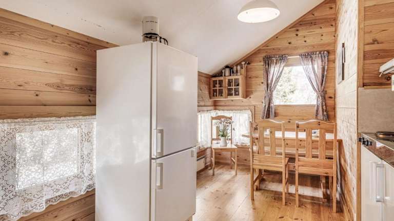 Das Ferienhaus bietet 2 Schlafzimmer und einen offenen Schlafbereich, ausgestattet mit einem TV, einer gut eingerichteten Küche mit Kühlschrank und Mikrowelle sowie einem Badezimmer mit Dusche. Bettwäsche, Handtücher und Wäsche werden nach örtlichen Richtlinien gewaschen.