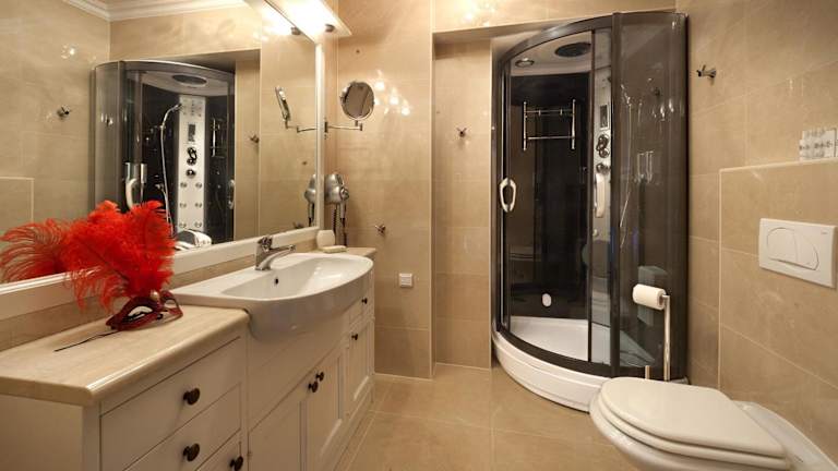 Die klimatisierten Unterkünfte sind im klassischen Stil eingerichtet und verfügen über möblierte Balkone oder Terrassen. Alle Zimmer und Apartments sind mit modernen Annehmlichkeiten wie einem LCD-Sat-TV ausgestattet. Die Badezimmer bieten eine Hydromassage-Dusche oder eine Whirlpool-Badewanne sowie kostenfreie Pflegeprodukte. Die Apartments verfügen zudem über eine voll ausgestattete Küche.