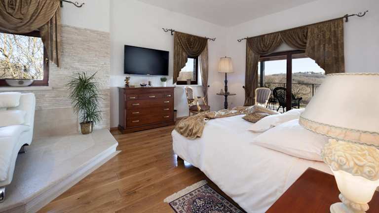 Die Villa Castello Rausch befindet sich im Dorf Muguba, 5 km vom Zentrum von Poreč entfernt, wo die von der UNESCO geschützte Euphrasius-Basilika besichtigt werden kann. Der Limski-Kanal, bekannt für seine Austern und Muscheln, liegt 12 km entfernt. Der Flughafen Pula ist 35 km entfernt.