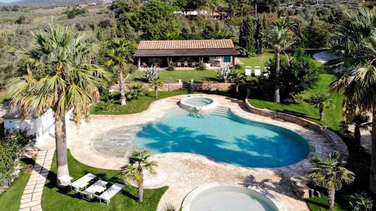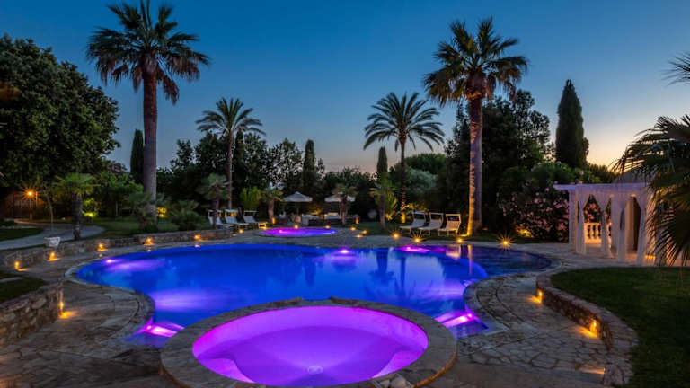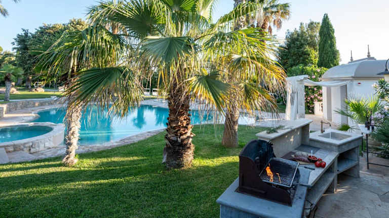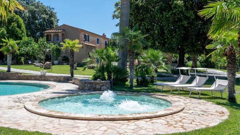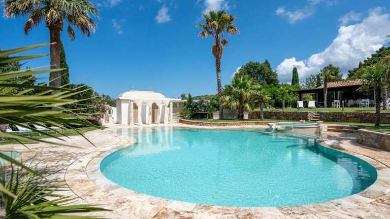 Das Ferienhaus verfügt über einen eigenen Swimmingpool sowie einen saisonalen Aussenpool. Entspannung bieten Whirlpool- und Grillmöglichkeiten.