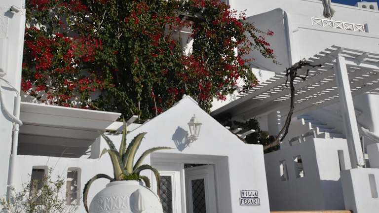 Das Hotel Villa Fegari bietet eine charmante und individuell gestaltete Unterkunft im Kykladen-Stil mit herrlichem Panoramablick auf die Ägäis und den Vulkan. Die Studios und Apartments sind geschmackvoll eingerichtet und verfügen über eine Küchenzeile sowie kostenfreies WLAN. Die zentrale Lage ermöglicht es den Gästen, das lebhafte Zentrum von Fira bequem zu Fuß zu erreichen. Restaurants, Bars und Sehenswürdigkeiten sind ebenfalls in der Nähe. Für einen komfortablen Aufenthalt können Autos gemietet werden und kostenfreie Parkplätze stehen zur Verfügung.