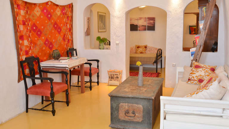 In unmittelbarer Nähe der Unterkunft finden Sie eine Vielzahl von Restaurants und Bars, in denen Sie traditionelle griechische Küche und internationale Spezialitäten genießen können. Die zentrale Lage ermöglicht es Ihnen, bequem die gastronomische Vielfalt von Fira zu erkunden.
