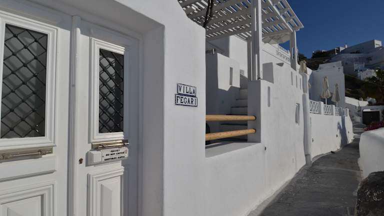 Die Villa Fegari befindet sich oben auf der Caldera und bietet einen atemberaubenden Blick auf die Ägäis und den Vulkan. Das lebhafte Zentrum von Fira ist nur 10 Gehminuten entfernt, wo Sie eine Vielzahl von Restaurants, Bars und Geschäften finden. Der Hafen Ormos Athinios ist 9 km entfernt und der nationale Flughafen Santorin ist 6 km entfernt. Das malerische Oia liegt 10 km entfernt. Die zentrale Lage ermöglicht es den Gästen, bequem die umliegenden Sehenswürdigkeiten zu erkunden.