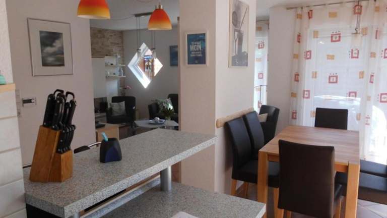 Die Ferienwohnung umfasst drei Schlafzimmer, die funktional ausgestattet sind. Die gut eingerichtete Küche ermöglicht die Selbstversorgung und bietet sowohl einen Kühlschrank als auch einen Geschirrspüler. Des Weiteren sind zwei Badezimmer vorhanden, die mit Duschen ausgestattet sind. Handtücher und Bettwäsche werden bereitgestellt.