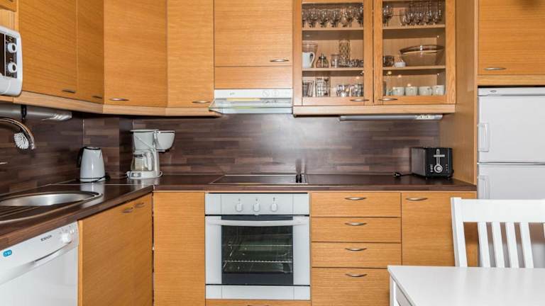 Das Ferienhaus verfügt über eine Küchenzeile, die mit einem Kühlschrank und einem Geschirrspüler ausgestattet ist. Bettwäsche, Handtücher und Wäsche werden nach den Richtlinien der örtlichen Behörden frisch gewaschen.