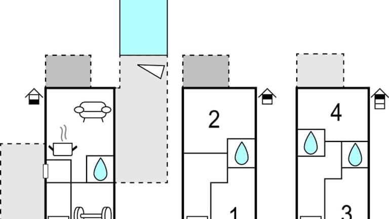 Die Unterkunft besteht aus vier Schlafzimmern und einem Wohnzimmer. Die drei Badezimmer sind jeweils mit einer Dusche ausgestattet und die gesamte Wohnfläche wird von Klimaanlage und Heizung unterstützt. Es sind zudem Sitzmöglichkeiten im Freien auf der Sonnenterrasse vorhanden.