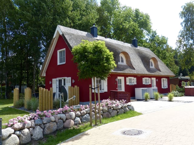 Unsere reetgedeckten Ferienhäuser Greta und Stella im Badeort Glowe in einer der schönsten Regionen auf Rügen befinden sich in einem Doppelhaus. Die beiden Häuser sind komplett gefliest und mit Fußbodenheizung ausgestattet. Schlafmöglichkeiten für 4 Personen (1 Doppelbett und ein Doppelstockbett) sind vorhanden, ein Babybett ist verfügbar. Im ganzen Haus ist WLAN über DSL-Internetanschluss verfügbar. Pro Haus ist eine eigene Terrasse mit einem Tisch und vier Stühlen vorhanden. Jedes Haus verfügt über einen eigenen Strandkorb. Grill, Strandmuschel, Windschutz und Bollerwagen befinden sich im Gartenhaus (je Haus separat vorhanden), wo sich auch die Abstellmöglichkeit für die eigenen Fahrräder befindet.