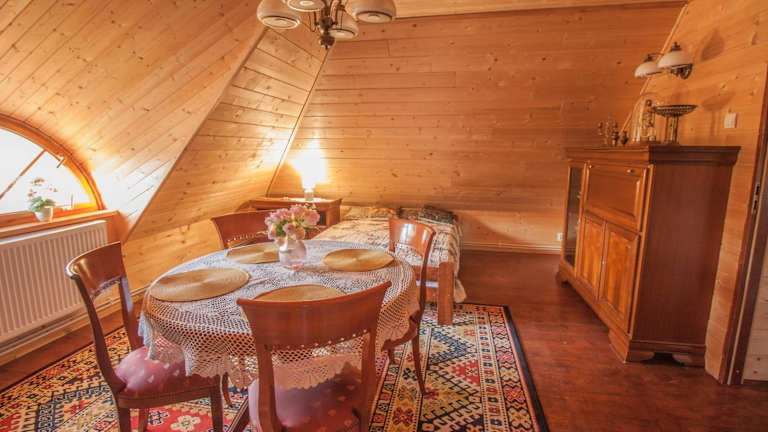 Die Unterkunft liegt in Poniklica, umgeben von einer idyllischen Naturlandschaft, die zu Erkundungstouren einlädt. In der Nähe befinden sich Möglichkeiten zum Wandern, Angeln und Velofahren. Białystok Bahnhof ist 31 km entfernt und der Flughafen Olsztyn-Mazury liegt 181 km entfernt.